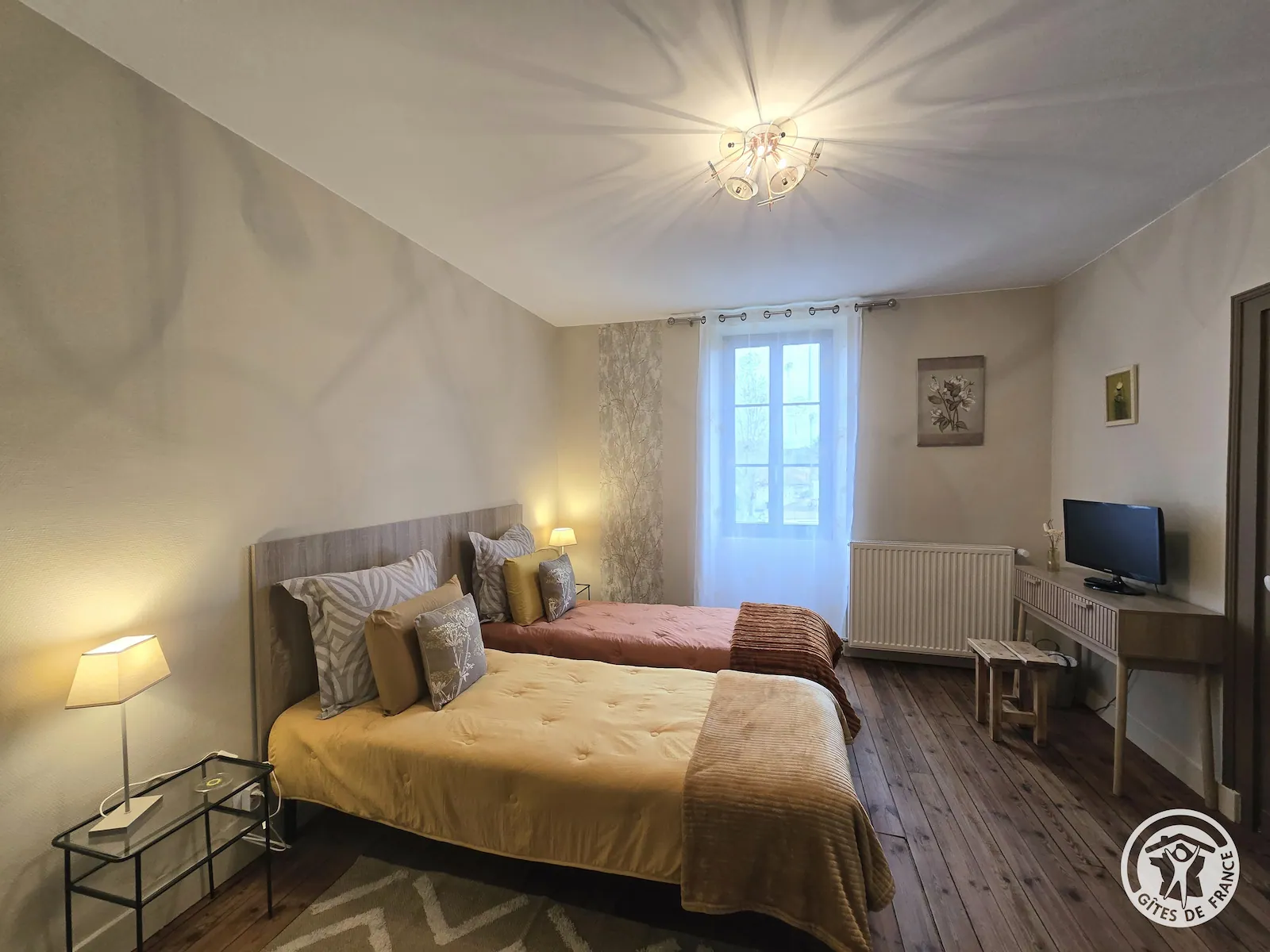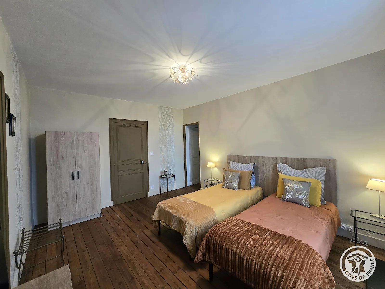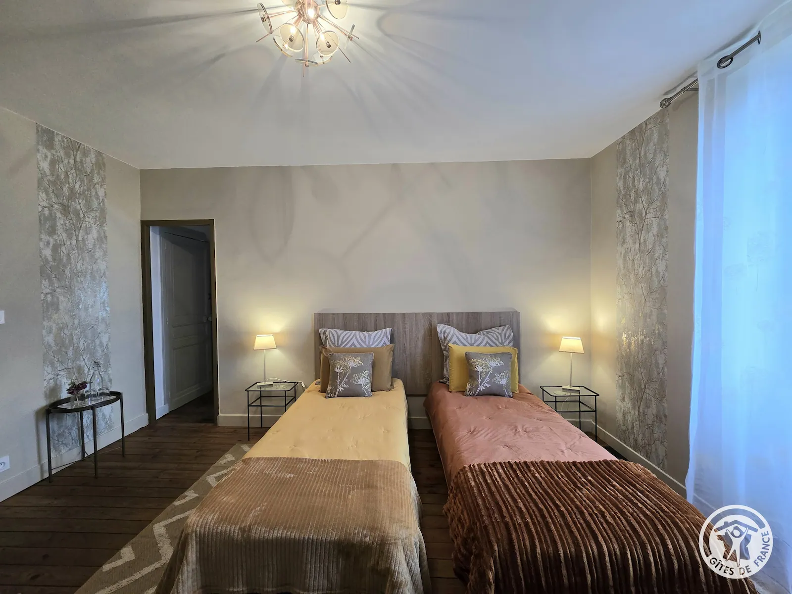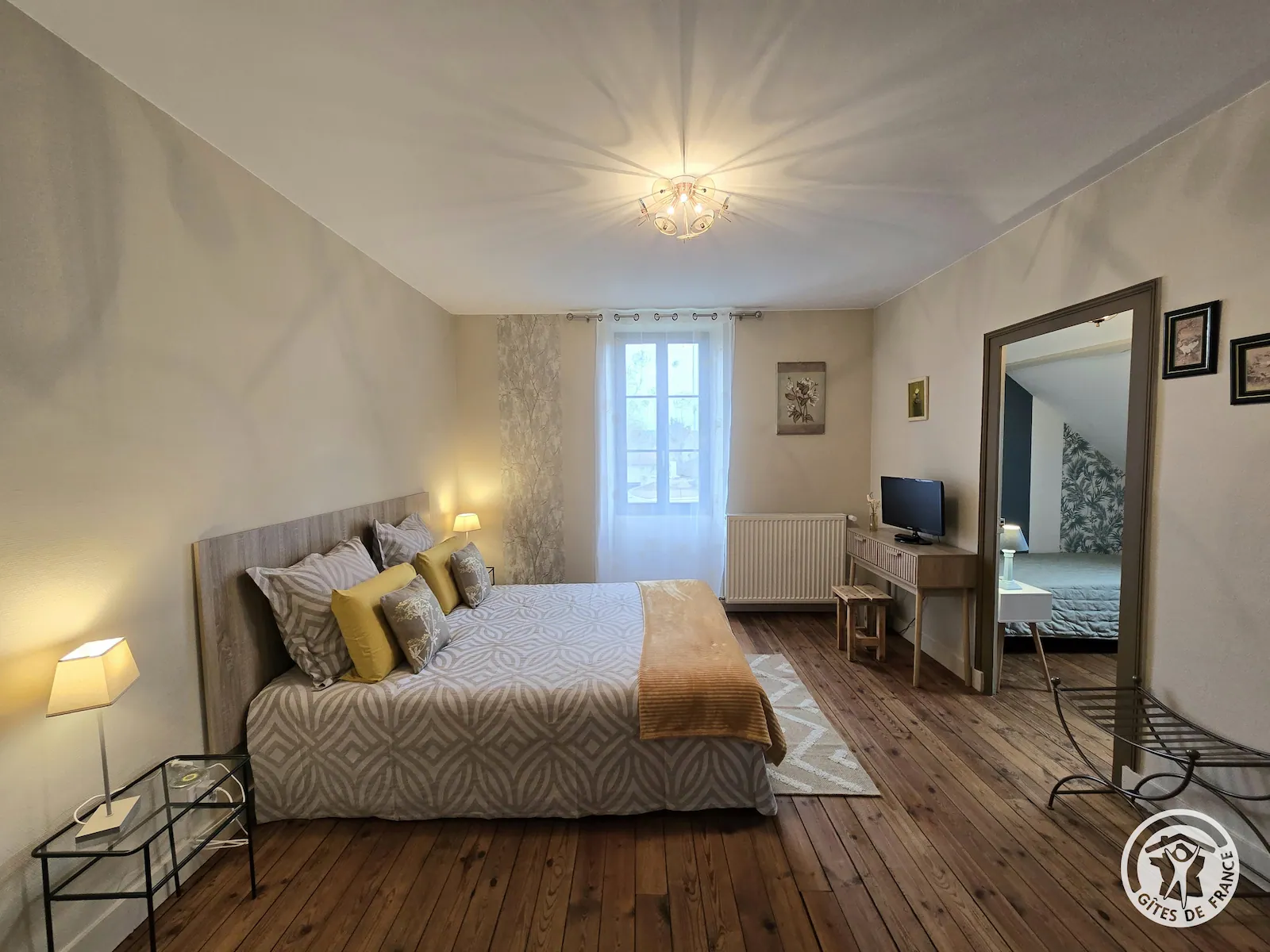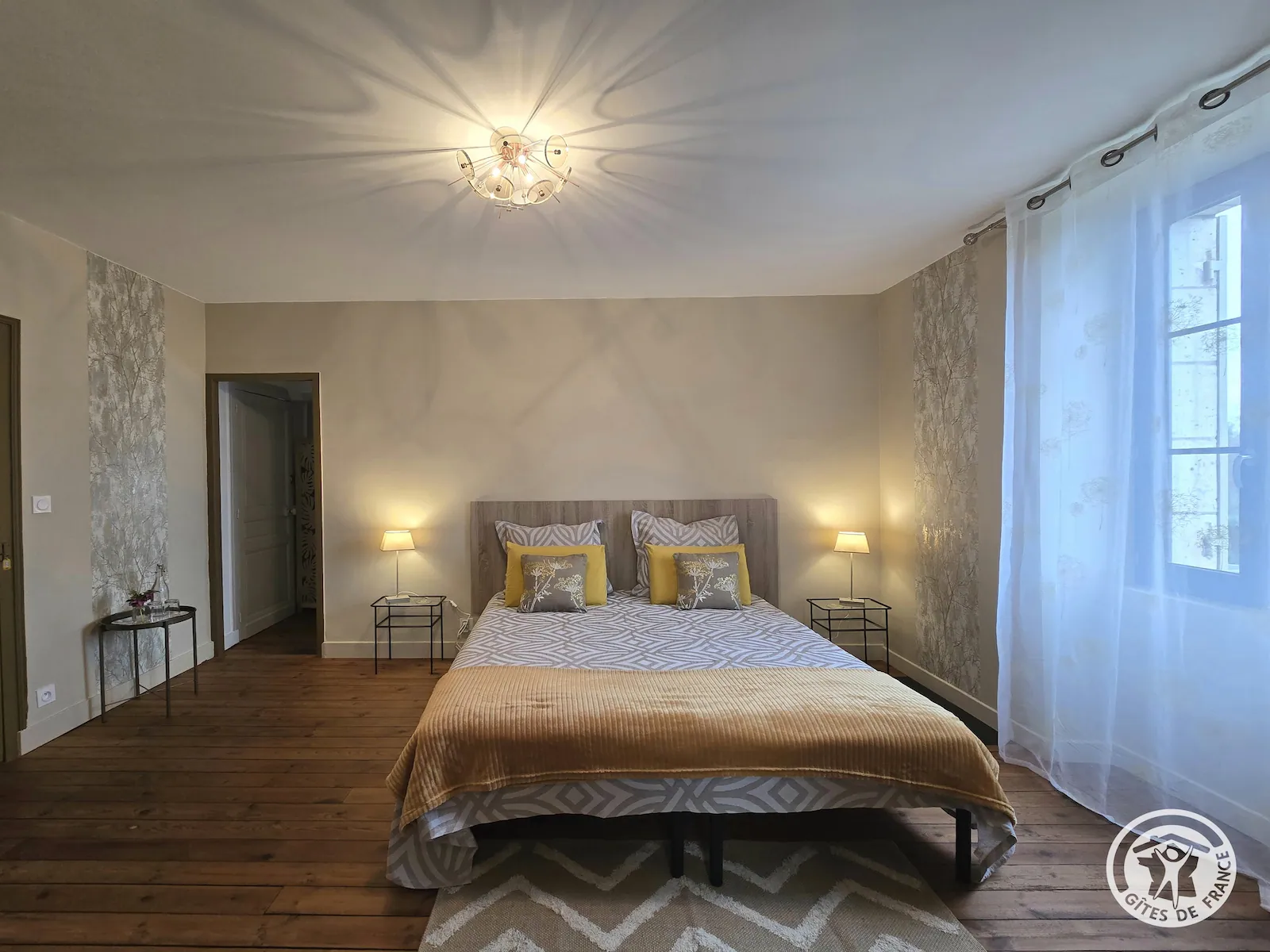 Plus intime, la suite Ambre se distingue par ses tons clairs et chaleureux. Très lumineuse, elle invite au calme et à la détente après une journée de découverte du Périgord Noir.